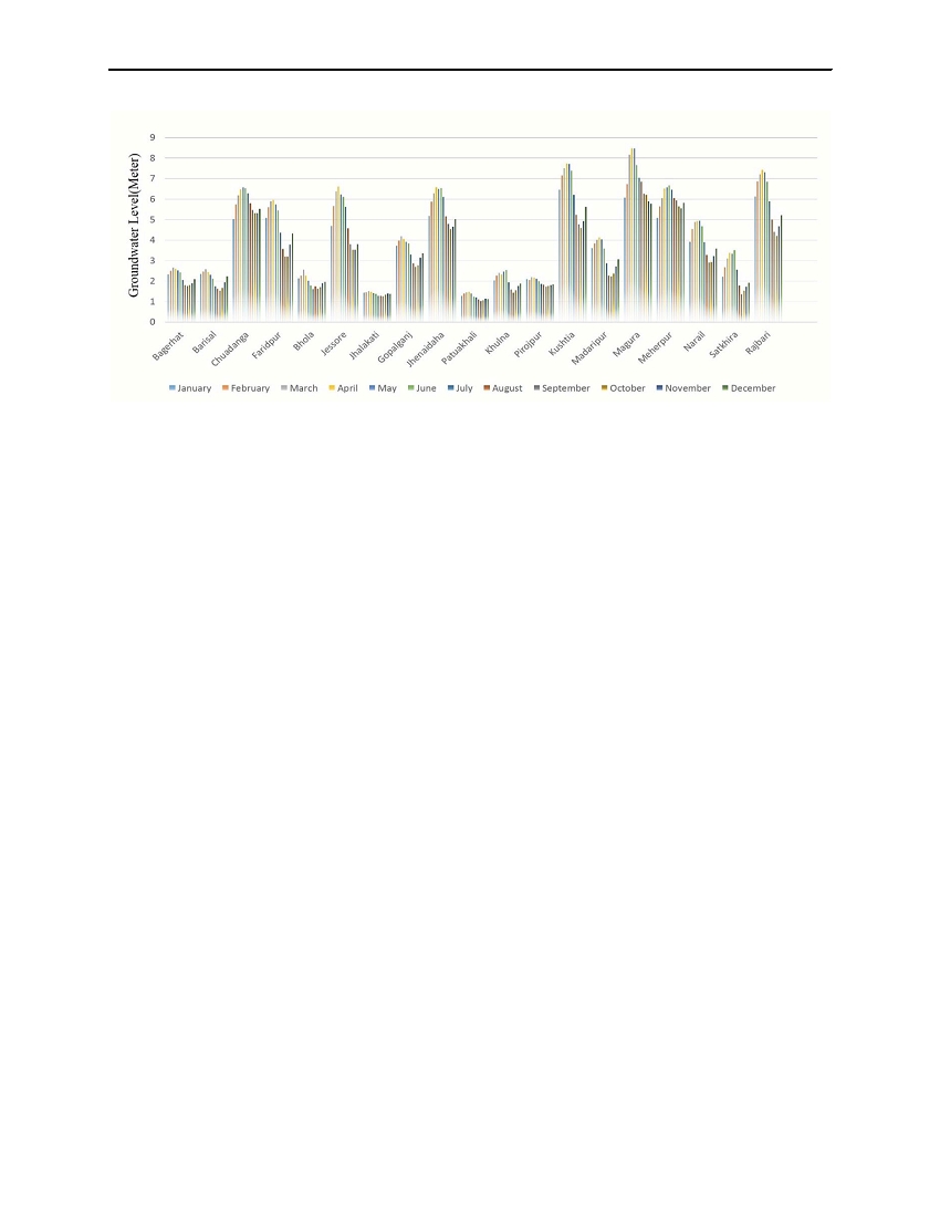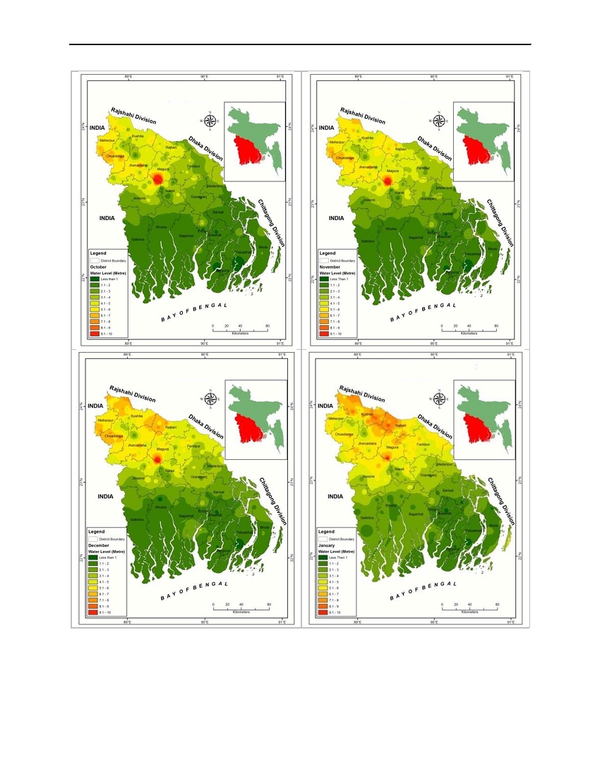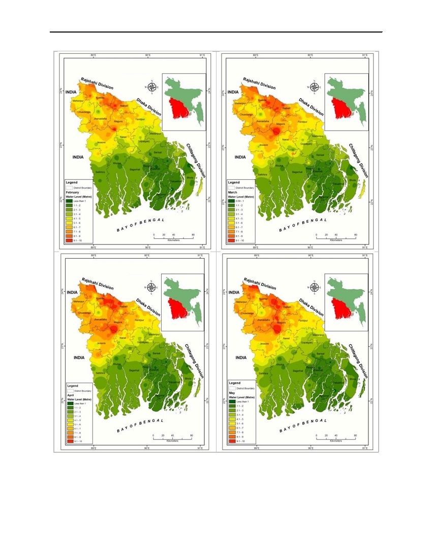 southwestern part of this country. During the pre-monsoon season, groundwater level ranges from 6 to 10 m in Magura, Rajbari,