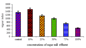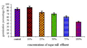 (control, 10, 25, 50, 75 and 100%) of sugar mill effluent on seed germination