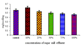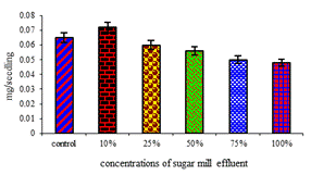 Effect of sugar mill effluent on changes of growth and aminoacid and protein